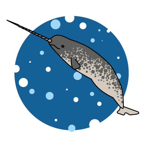 北極海など北の海に生息する哺乳類でハクジラ類の一種。体長は約4~6m、角(つの)を含むと大きい個体で約9mにも及び、「海のユニコーン」とも呼ばれる。歯は上顎(うわあご)にある2本のみで、実は左側の1本が左巻きに捻(ねじ)れながら伸びて上唇(じょうしん)から突き出た牙(きば)が角に見えている。牙は雄だけにあるが、まれに雌や2本伸びたものもいる。5~10頭の群れで行動し、天敵はシャチとホッキョクグマだが、人間の狩猟や環境汚染、気候変動により生存が脅かされている。